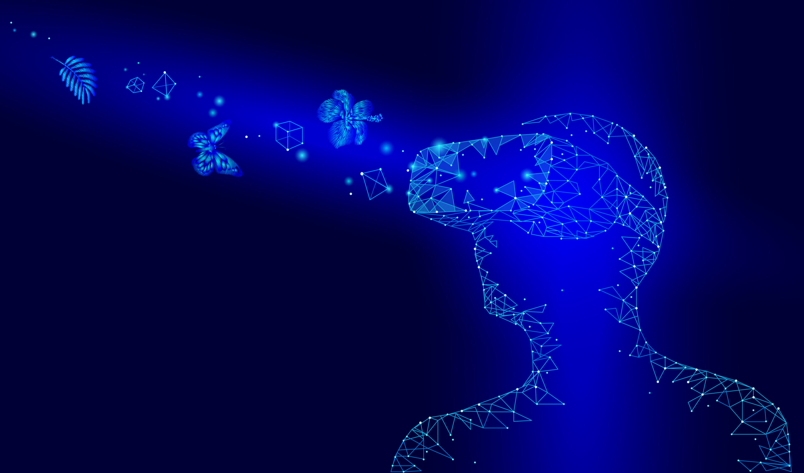 Virtual reality helmet glass headset. Future video internet technology. Man with device on head. Low poly connected dots point line triangle dark blue vector illustration art